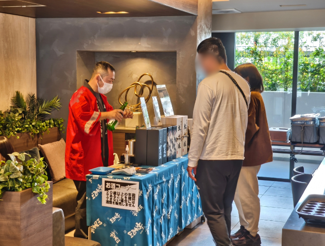 創業1815年の老舗妙高酒造による無料唎酒会を実施。通常は会員店でしか手に入らない限定酒や、杜氏が約40年の集大成として醸した数量限定のプレミアム日本酒も特別にご用意いただきました。職人技が光るこだわりの日本酒を楽しみながら、居住者同士の会話が自然と弾みました。