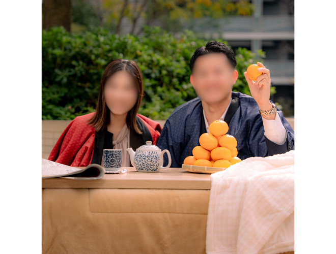 パーティーラウンジに設置されたこたつは、冬の季節感を演出するフォトスポットとして大人気。「子供がコタツを知らなかった」というご家族にとっては、日本の伝統文化を体験し記念撮影できる貴重な機会となりました。みかんや急須が置かれたこたつは、SNS映えする写真スポットとしても機能しました。