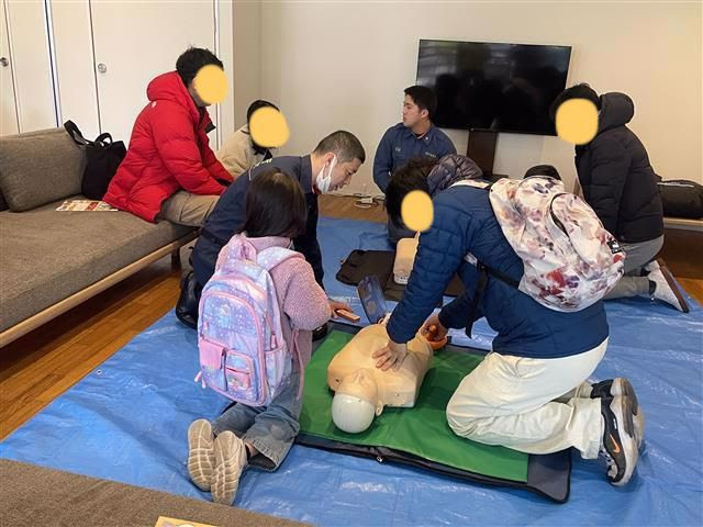 ・AEDによる救命訓練、三角巾訓練、起震車による地震体験