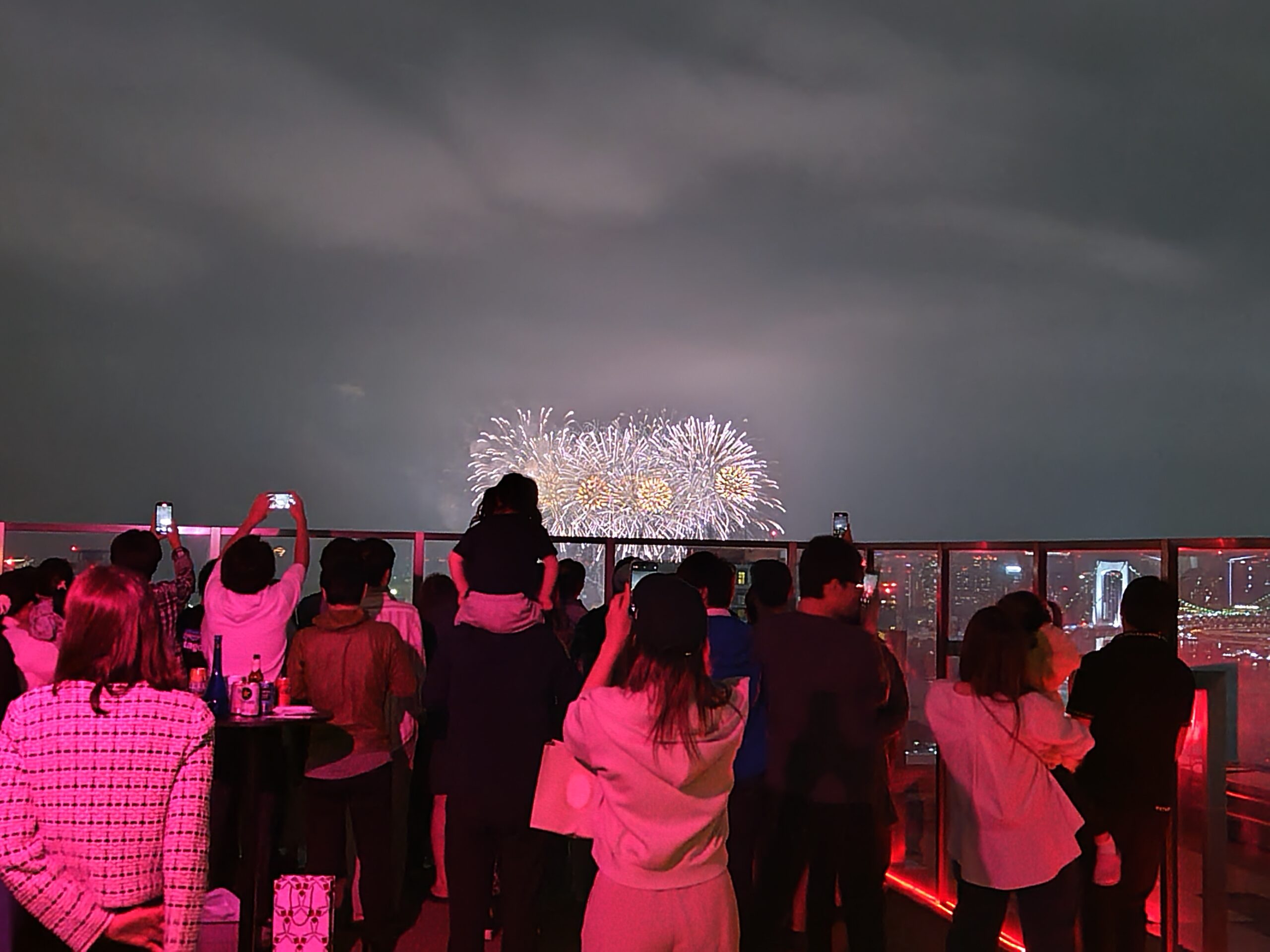 ブリリアマーレ有明の屋上やテラスという特等席から眺める花火は圧巻で、音楽と光に包まれながら五感をフルに使って楽しめる非日常体験となりました。