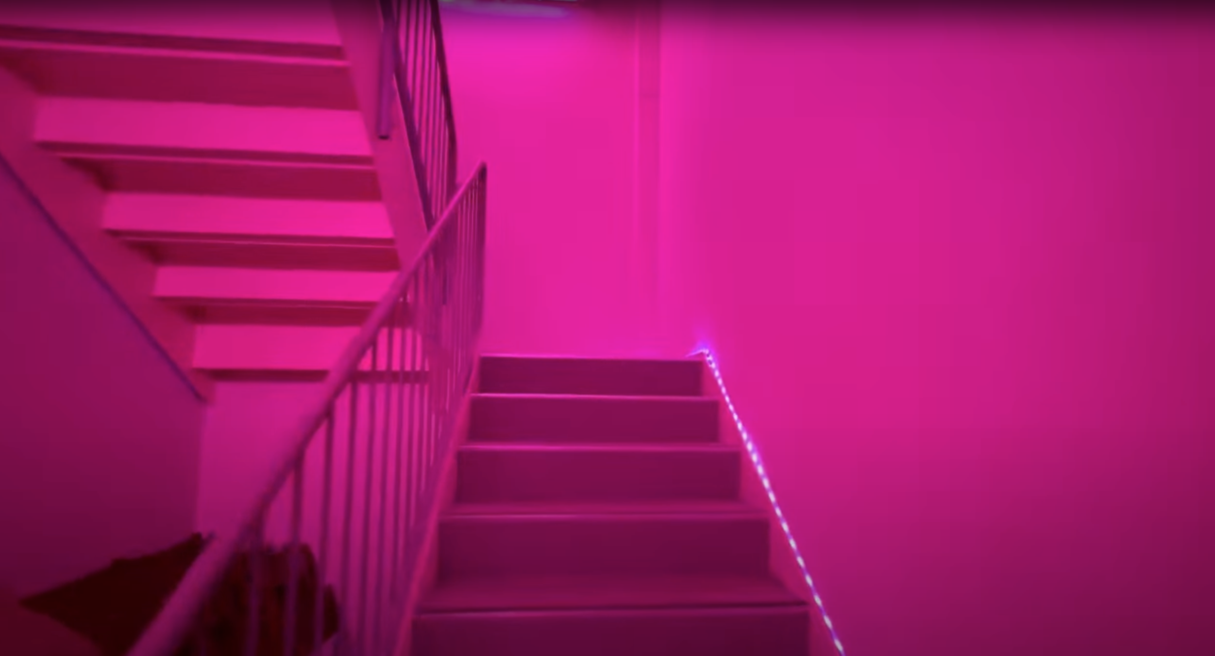 通常タワマンの屋上に上る階段は、非常階段のような雰囲気ですが、弊社はここに照明を入れることで、東南アジアのスカイバー風の空間を作り上げています。階段を上る段階から非日常感を演出し、屋上に出ると光と音楽が参加者を迎え入れます。